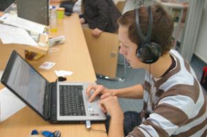 Mit dem Interview und ein paar Bildern von der Band in der Tasche ging es dann wieder in den Seminarraum, um sich in großer Erwartung das Interview anzuhören und zu schneiden.